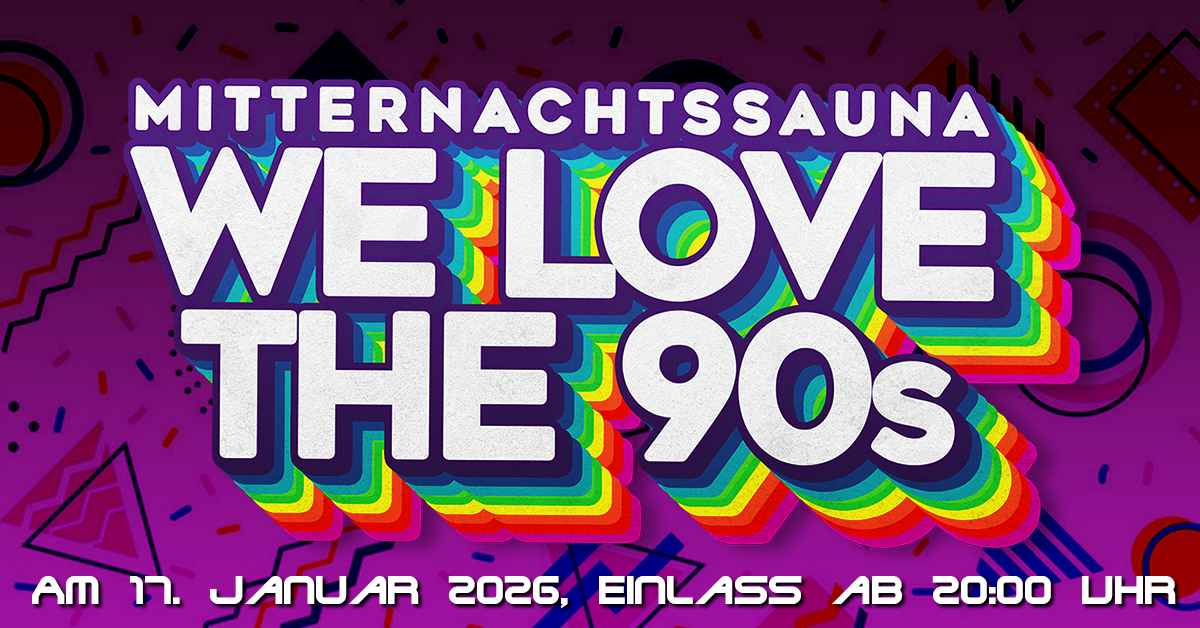 Das neue Jahr ist nur ein paar Tage alt, da begeben wir uns schon wieder in die Vergangenheit: In die schrillen, bunten 90er-Jahre, weil früher ohnehin alles besser war. Wir laden Sie herzlich ein zu unserer Mitternachtssauna „We Love The 90s“ am 17. Januar 2026 – Einlass wie immer ab 20:00 Uhr.