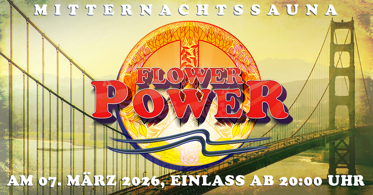 Wir wünschen viel Spaß bei unserer Mitternachtssauna „Flower Power“ und freuen uns auf Ihren Besuch!