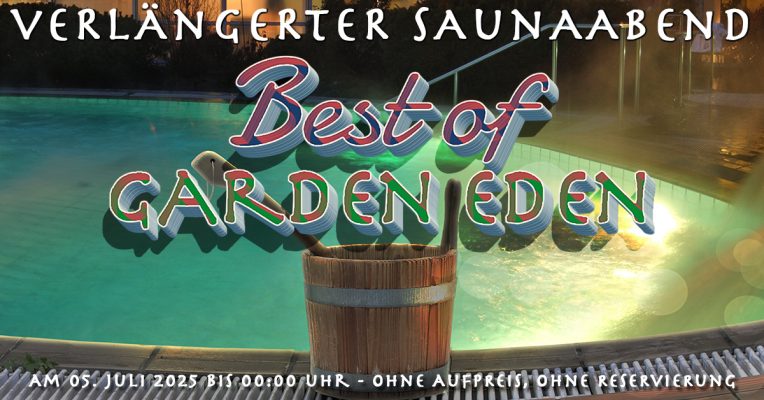 Wir laden Sie herzlich ein zum nächsten verlängerten Saunaabend „Best Of Garden Eden“ am Samstag,