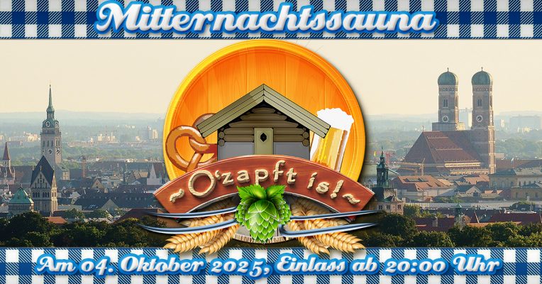Wir laden Sie am Samstag, 04. Oktober 2025 herzlich ein zu unserer Mitternachtssauna “O’zapft is!”